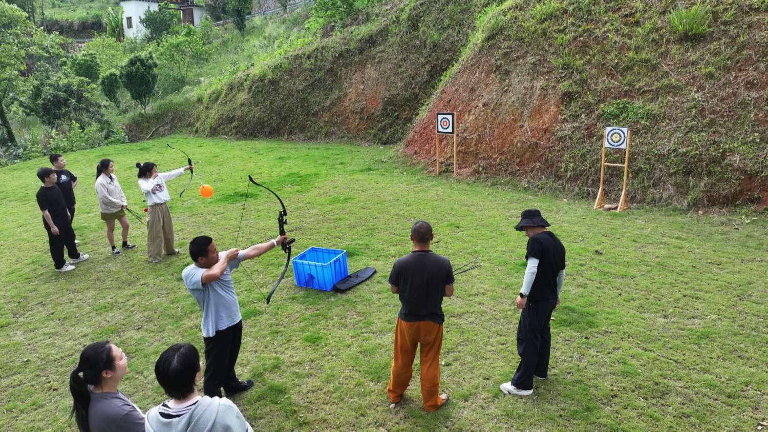在阳光和煦的室外草坪上,青年男女自由组队,通过“飞盘对抗”“户外射箭”等游戏环节,在团队协作中中培养默契,在游戏乐趣中增进了解,处处洋溢着欢快的青春气息,友谊的种子在阳光的滋养下悄然生长。