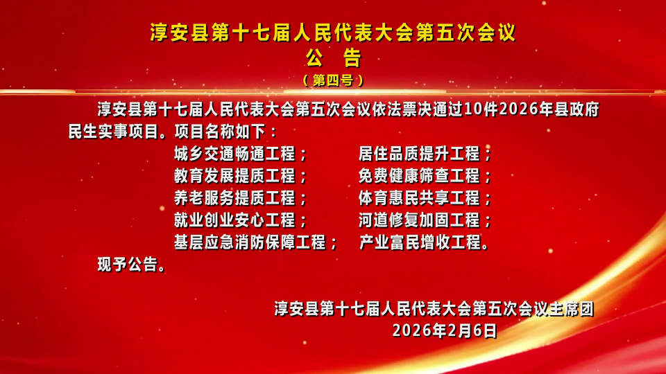 淳安县第十七届人民代表大会第五次会议公告(第四号)