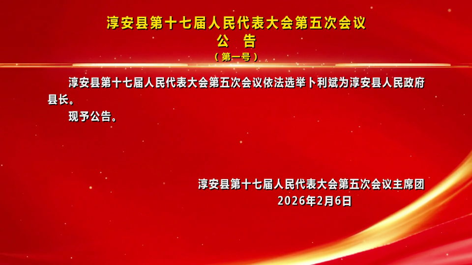 淳安县第十七届人民代表大会第五次会议公告(第一号)