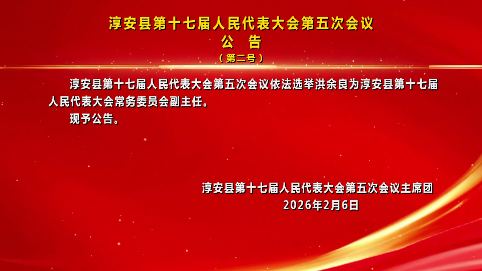 淳安县第十七届人民代表大会第五次会议公告(第二号)
